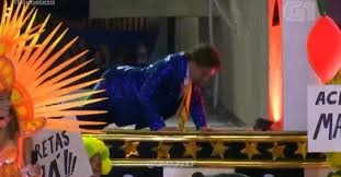 Adnet, que é um dos autores do samba da agremiação, desfilou em um carro alegórico vestido como presidente da República, com peruca semelhante ao cabelo de Bolsonaro.