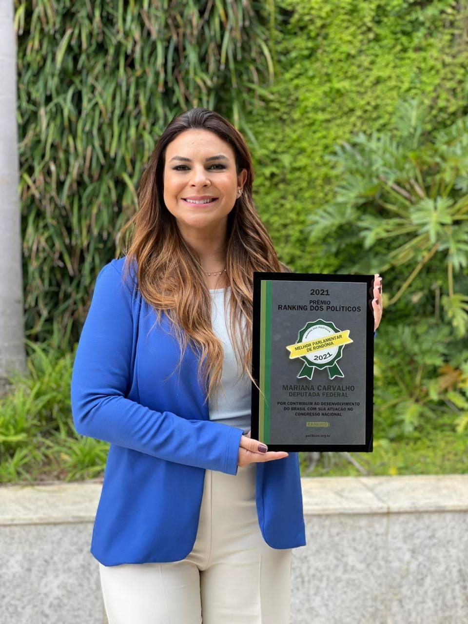 A deputada federal Mariana Carvalho recebeu, nesta quarta-feira, 8, o prêmio de Melhor Deputada de Rondônia. A premiação é promovida pelo Ranking dos Políticos, que condecora os melhores parlamentares do Brasil de acordo com o desempenho durante o ano.