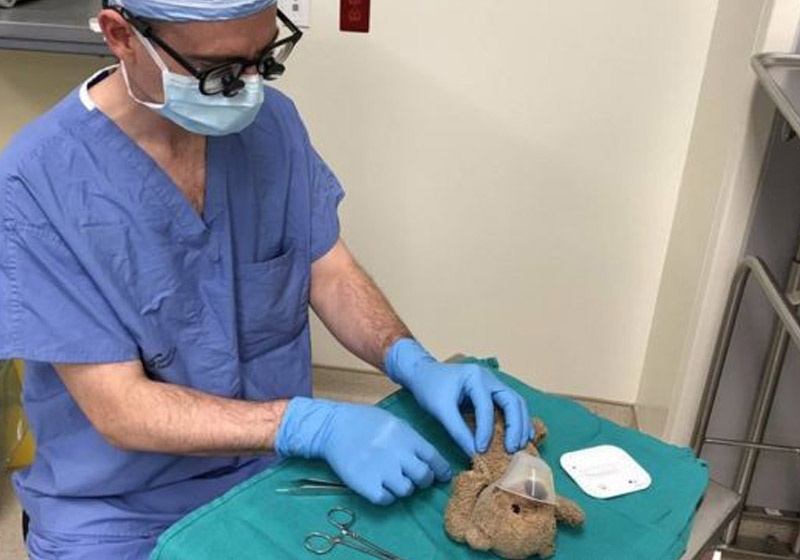 Médico “opera” ursinho antes de fazer cirurgia no cérebro de menino