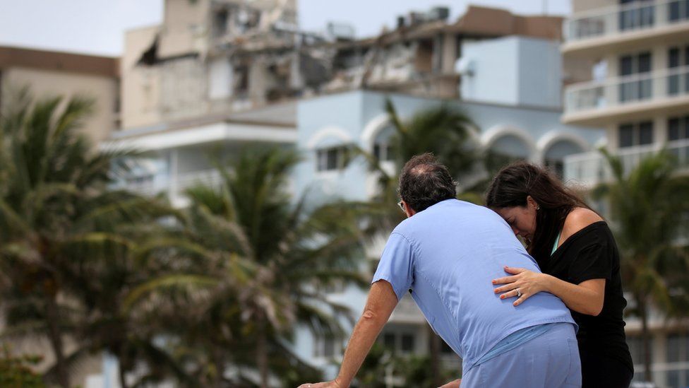 media captionFirefighters search for survivors under collapsed Miami building