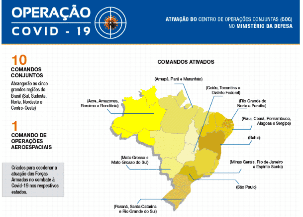 O Ministério da Defesa ativou, na última sexta-feira (20), o Centro de Operações Conjuntas para atuar na coordenação e planejamento do emprego das Forças Armadas no combate à Covid-19.