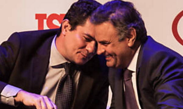 Moro, que tirou fotos com Aécio, hoje é papagaio de pirata de Bolsonaro.