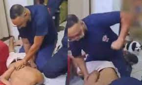 Um motorista do Samu foi filmado dando socos em um paciente em surto, em Realengo (RJ), na última sexta-feira (19).