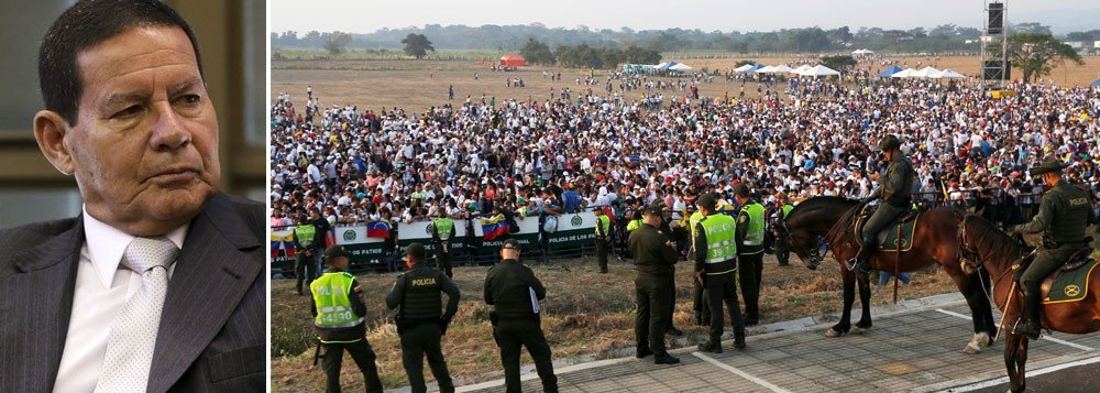 247 - Na contramão do discurso beligerante do governo Trump e de seu próprio governo, o vice-presidente Hamilton Mourão diz que o fechamento da fronteira pelo governo venezuelano é uma atitude que não representa qualquer agressão: "O fechamento da fronteira para nós não significa um ato de agressão. A Venezuela tem liberdade para fazer o que quiser". Mourão defende em que "a questão da Venezuela tem que ser resolvida pelos venezuelanos", em oposição aberta ao bolsonarismo sob o comando de Trump, que pretendem intervir no país vizinho.