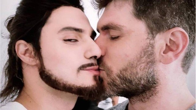 Após estrear no quadro "Show dos famosos", no Domingão do Faustão, interpretando Luan Santana, Hugo Bonemer ganhou um chamego do namorado, o também ator Conrado Helt. Num registro publicado no Instagram na noite do último domingo, Hugo aparace ainda caracterizado como o cantor e ganha um beijo no canto da boca do companheiro, que brinca."Peguei o Luan Santana".