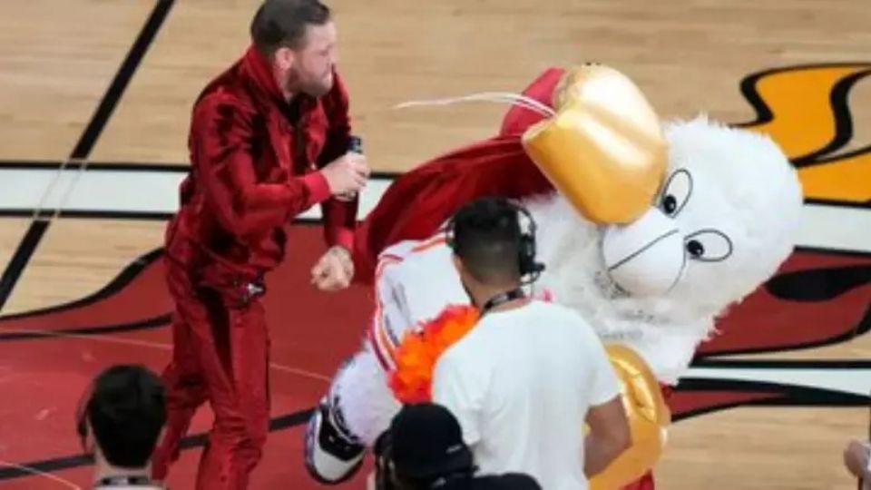 O mascote oficial do Miami Heat, Burnie, que animava o jogo entre a equipe da Flórida e o Denver Nuggets pelo jogo 4 das finais da NBA, tomou um soco surpreendente do campeão do UFC Conor McGregor.