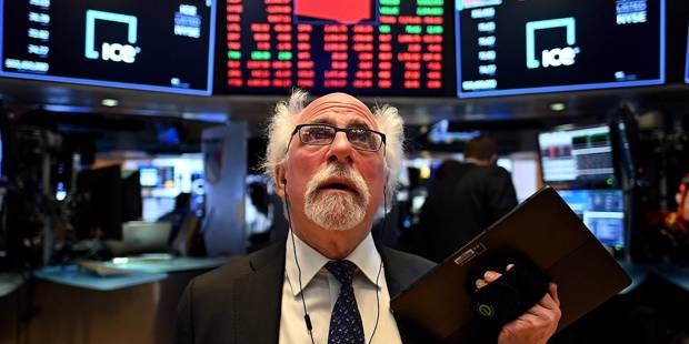Traders work during the opening bell at the New York Stock Exchange (NYSE) on March 16, 2020 at Wall Street in New York City. - Trading on Wall Street was halted immediately after the opening bell Monday, as stocks posted steep losses following emergency moves by the Federal Reserve to try to avert a recession due to the coronavirus pandemic.Just after the opening bell, the S&P 500 was at 2,490.47, a drop of 8.1 percent and beyond the seven percent loss that automatically triggers a 15-minute trading halt. (Photo by Johannes EISELE / AFP) (Photo by JOHANNES EISELE/AFP via Getty Images)
