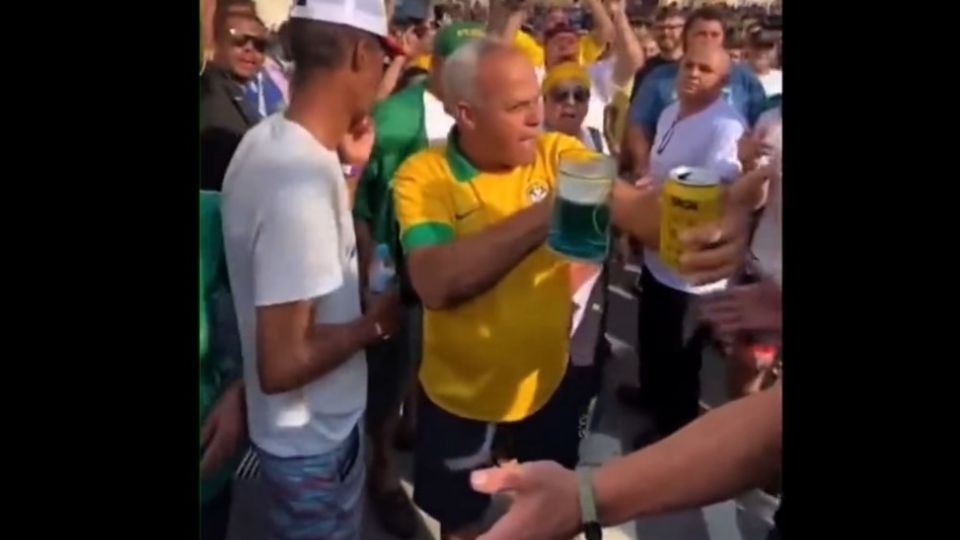Os vídeos mostram um homem descontrolado, aparentando embriagues, com uma lata de cerveja fazendo ameaças e apontando o dedo para um cinegrafista.