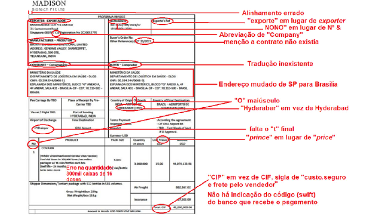 Isso para não falar no fato de que este é o terceiro documento diferente apresentado pelo governo para se defender no caso do suposto golpe da compra fraudulenta da vacina indiana Covaxin, que a cada dia assombra mais o presidente.