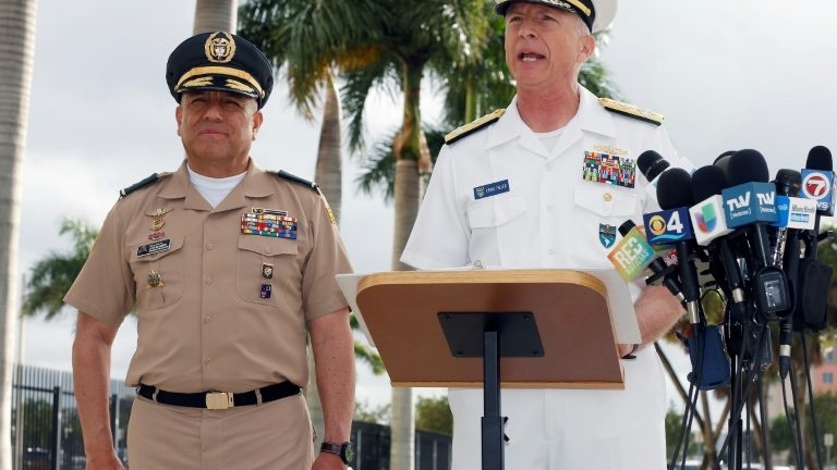 “Esta mensagem é para os militares venezuelanos: vocês serão responsabilizados por suas ações. Façam a coisa certa. Salvem as pessoas em seu país”, disse o almirante Craig Faller, chefe do Comando Sul, o comando militar americano para assuntos do Caribe e da América Central e do Sul.