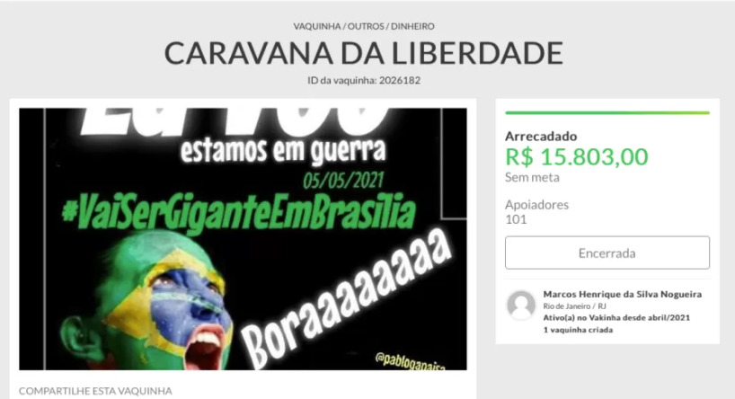 A Caravana da Liberdade, lançada em abril com o objetivo de levar 3 mil apoiadores do presidente Jair Bolsonaro (sem partido) à Brasília em maio, não conseguiu arrecadar fundos suficientes. Pior do que isso, os participantes que já pagaram estão com dificuldades para reaver o dinheiro. O organizador do evento usava nome falso. As informações são do repórter Maurício Businari, no UOL.