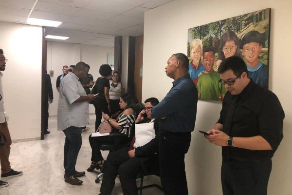 Funcionários do líder do governo João Doria na Assembleia Legislativa, Carlão Pignatari (PSDB), dão plantão na fila do protocolo da Casa.