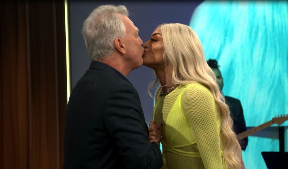Pedro Bial recebe Pablo Vittar com selinho! — Foto: TV Globo