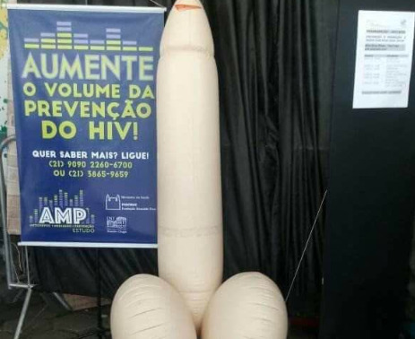 A data em que a foto foi tirada é desconhecida, mas tudo indica que o inflável fazia parte de uma campanha de prevenção ao HIV, já que ele estava posto junto a um banner do AMP, sigla do estudo batizado de “Anticorpos Mediando Prevenção”, conduzido pela Fiocruz.