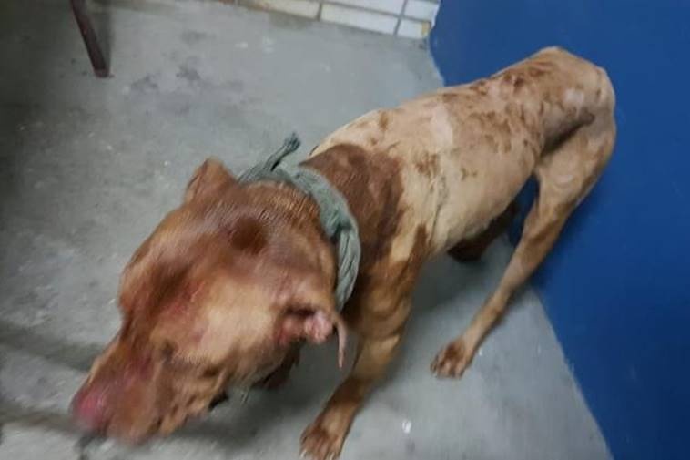 Pit-bulls achados em rinha eram alimentados com restos de animais
