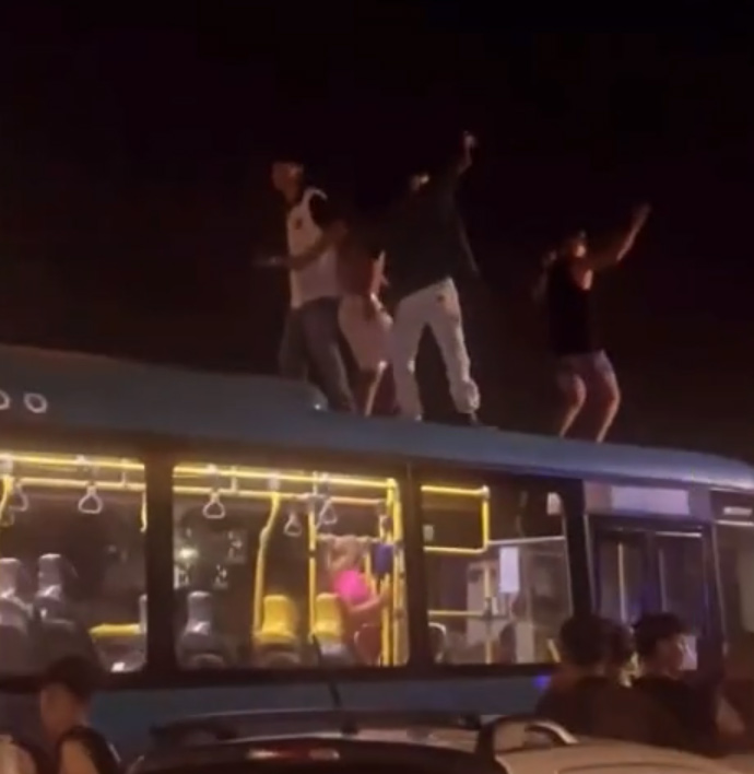 Os policiais foram até o local, após receberem ligações informando que vândalos estavam em cima de um ônibus coletivo, dificultando a saída do veículo. Essas pessoas teriam participado da Cavalgada, que iniciou por volta das 9 horas.