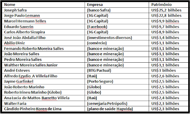 | Estes brasileiros mais ricos (Forbes) possuem R$ 115,5 bilhões. Vamos ordenhá-los? |