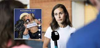 247- Após se envolver em polêmica por conta de um vídeo em que dança até o chão com amigos, a primeira-ministra da Finlândia, Sanna Marin, se desculpou nesta quarta-feira (24) por uma foto tirada dentro da residência de verão do governo na qual duas amigas suas aparecem com a camiseta levantada e se beijando, com uma placa escrita "Finlândia" sobre os seios. A reportagem pé do portal G1.