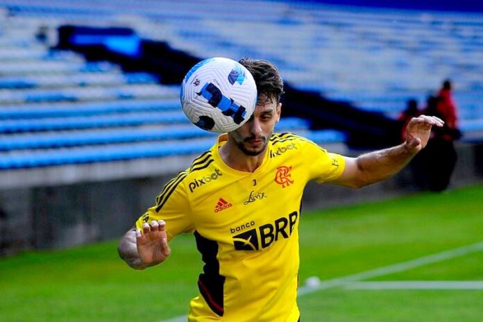 Rodrigo Caio não poderá atuar na final da Libertadores, visto que ainda se recupera de uma cirurgia no joelho e só retornará aos gramados em 2023. No entanto, mesmo assim, de acordo com informações divulgadas pela jornalista Isabelle Costa, o zagueiro participou das atividades junto ao elenco do Flamengo desde o aquecimento inicial.
