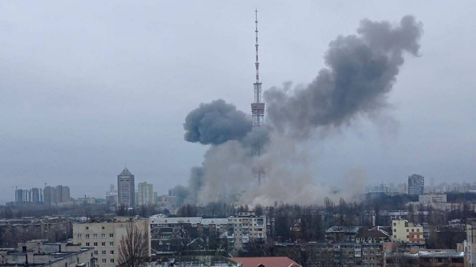 Minutos depois, a explosão de uma bomba foi registrada nas proximidades de uma torre de TV próximo à estação de metrô de Dorogozhychi, na região central da capital ucraniana.