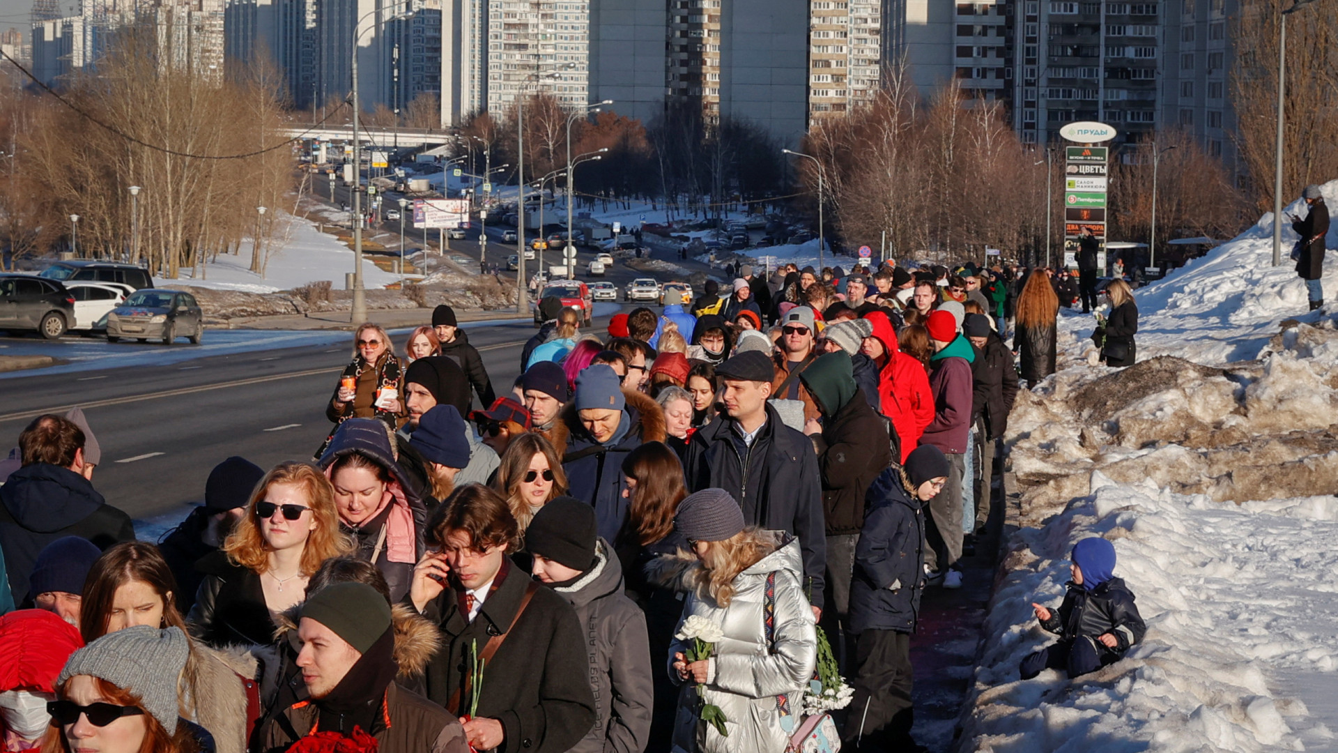Russos fazem fila para deixar flores no túmulo do opositor russo Navany
