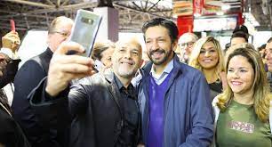 O socialista tem 33% das intenções de voto contra 32% do prefeito na pesquisa estimulada que considera na disputa a deputada federal Tabata Amaral (PSB, com 9,7%), o deputado federal Kim Kataguiri (União, 5,2%), Marina Helena (Novo 3,3%) e Padre Kelmon (PRD, 0,7%). Brancos e nulos são 9,9%, e não sabe/não respondeu são 6,2%.