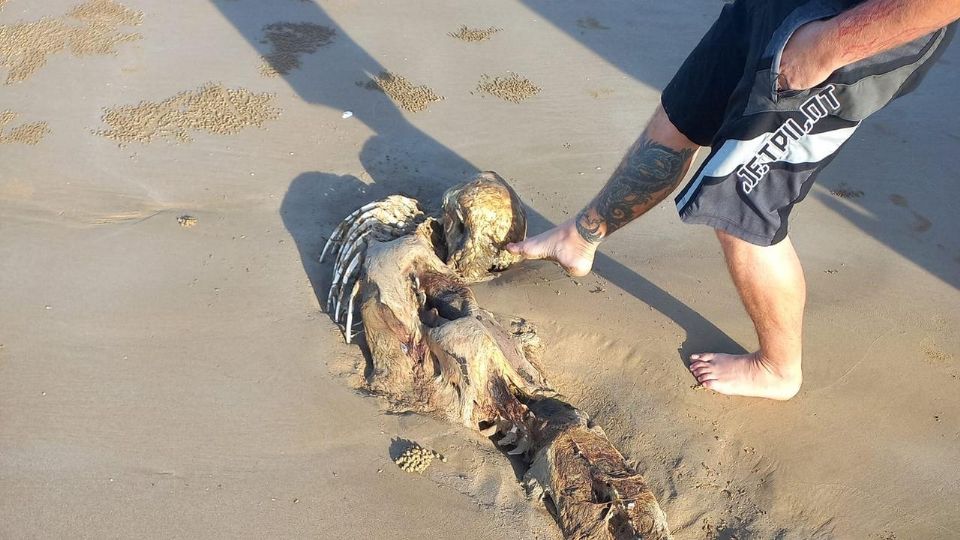 O corpo de uma criatura surpreendeu usuários das redes sociais após ser encontrado em uma praia na cidade de Keppel Sands, no estado de Queensland, na Austrália.