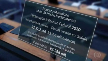 O sócio-presidente da Precisa Medicamentos, Francisco Maximiano, declarou em 2020 ter tido uma única fonte de renda, a Global Saúde, da qual recebeu R$ 52,2 mil reais (média mensal de R$ 4,3 mil). No entanto, a movimentação financeira do empresário indica gastos elevados em restaurantes e compras em lojas de luxo, incompatíveis com os valores informados à Receita Federal. As informações são da TV Globo e do G1.