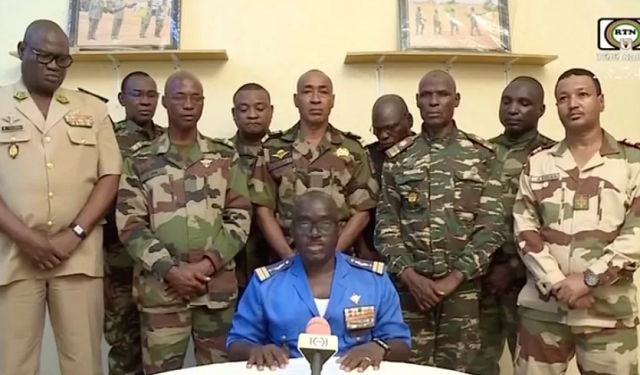 O Coronel Amadou Abdramane, acompanhado por outros nove oficiais vestindo uniformes militares, leu a declaração na noite desta quarta-feira (26). Na declaração, ele disse que as “forças de defesa e segurança… decidiram pôr fim” ao regime de Bazoum.