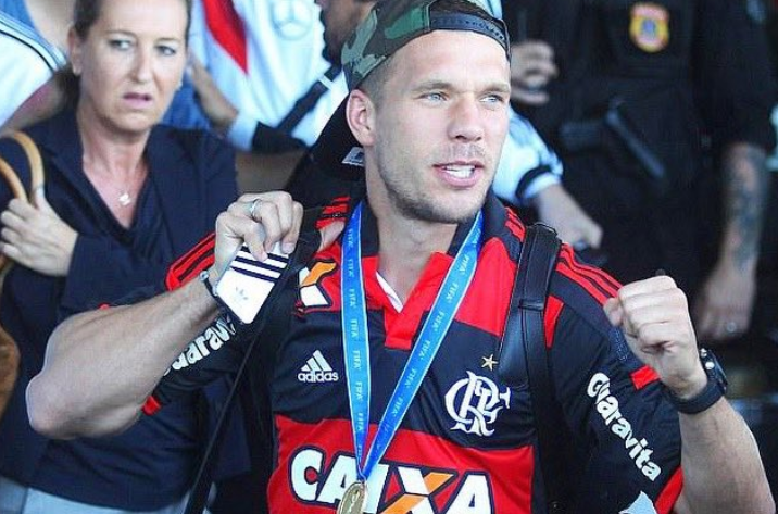 Lukas Podolski tem uma relação próxima com o futebol brasileiro, mais precisamente com o Flamengo. Tudo começou na Copa de 2014, no Brasil, quando a Alemanha foi campeã e o atacante vestiu algumas vezes a camisa do Rubro-Negro.