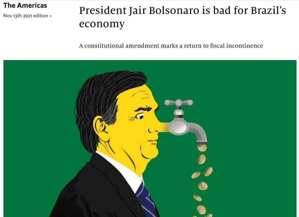 O enfraquecimento do teto de gastos é uma prova de que o presidente Jair Bolsonaro é ruim não apenas para o meio ambiente, os direitos humanos e a democracia, mas também para a economia do Brasil, destaca artigo da revista britânica The Economist em edição que circula a partir deste sábado, 13.