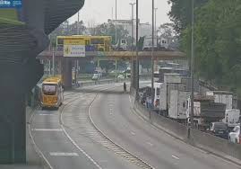 Avenida Brasil fechada por conta do tiroteio no entorno do Complexo de Israel — Foto: Reprodução/TV Globo