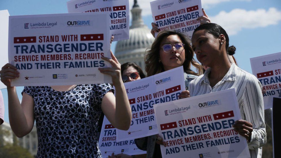 Former President Donald Trump banned trans Americans from serving in the military in his first year in office. President Joe Biden repealed the ban in January.