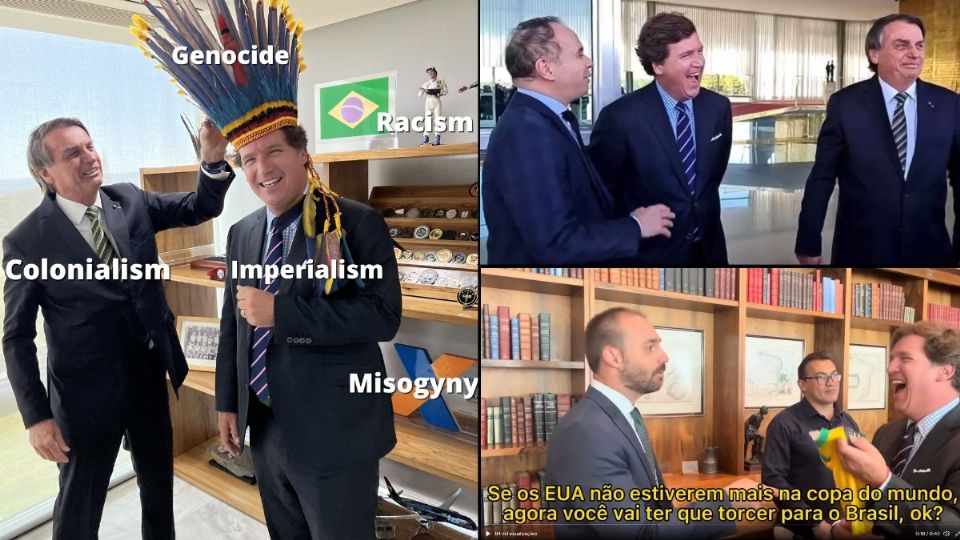 Afundando em meio ao lamaçal de corrupção e casos de assédio sexual no centro do governo, Jair Bolsonaro (PL) fez uma pausa na agenda para gravar entrevista e bajular Tucker Carlson, uma espécie de Augusto Nunes estadunidense, que mantém um programa de entrevistas e de "análises políticas" para alimentar a horda direitista e ultraconservadora na Fox News, a prima rica da Jovem Pan na América do Norte.