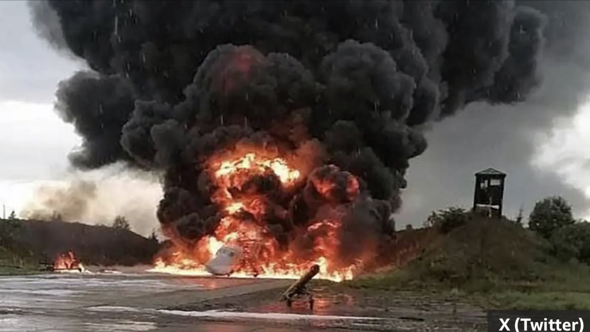 Imagens publicadas nas redes sociais, e verificadas pela BBC, mostram a aeronave Tupolev Tu-22 em chamas.