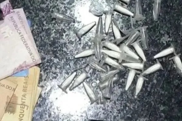 O homem estava hospedado em um quarto com uma acompanhante. No local, foram achados 20 pinos de cocaína cheios e 15 vazios, além de dinheiro, arma e cartão de crédito.