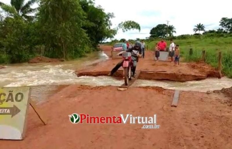 Por conta do imprevisto, um buraco se formou na pista e bloqueou o tráfego de veículos nos dois sentidos da Estrada Velha do Calcário, zona rural de Pimenta Bueno – RO.