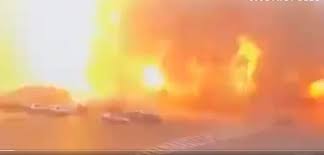 Em um vídeo feito por uma testemunha logo após o bombardeio, a rua aparece coberta por destroços e carros que estavam estacionados na rua em frente ao prédio, queimados.