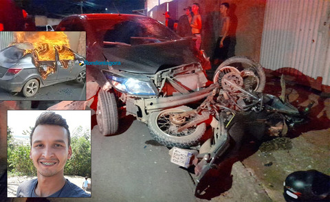 Vídeo: motociclista morre em colisão com carro que estava na contramão; veículo foi incendiado