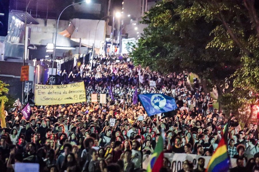 O ato, que começou no vão do Masp, na Avenida Paulista, transcorreu sem problemas até então. Guilherme Boulos, líder do Movimento dos Sem-Teto (MTST) e candidato derrotado à Presidência do PSol, discursou dizendo que reconhece o resultado das eleições, mas declarou oposição desde já às propostas antidemocráticas de Bolsonaro.