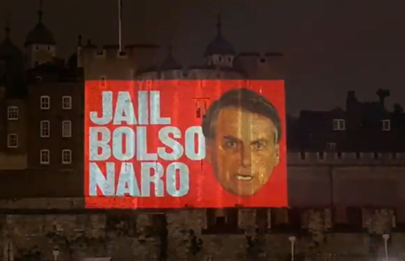 Vídeo: Projeção na Torre de Londres pede prisão de Bolsonaro
