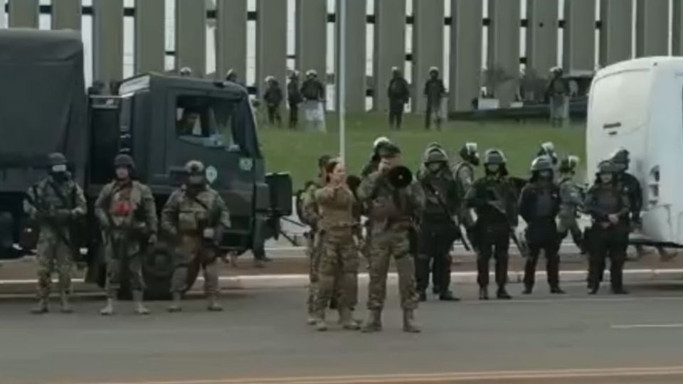 "Estamos dando prazo de uma hora, que é um prazo bastante razoável para que todos entrem nos ônibus e saiam em paz", diz o militar, que é aplaudido pelos terroristas", diz o militar, que é aplaudido pelos terroristas. O vídeo circula nos grupos de apoiadores de Bolsonaro, que seguem incitando um golpe.