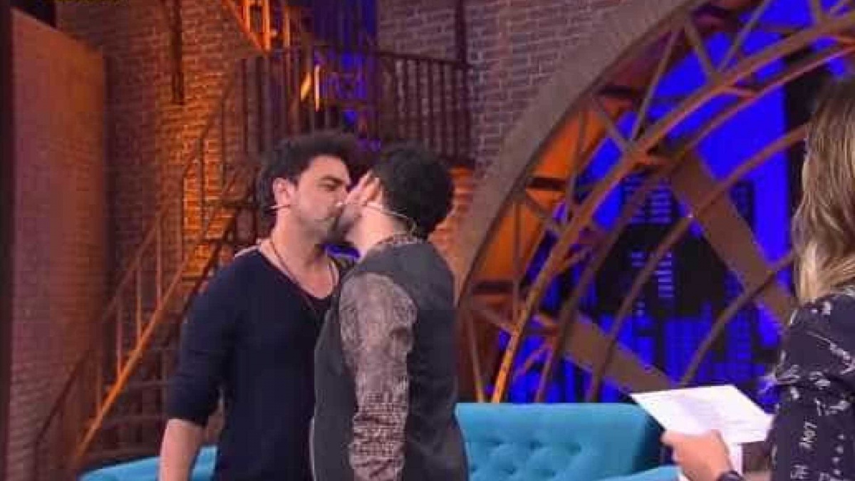 Zezé e Luciano dão selinho no 'Lady Night' para ver quem beija melhor