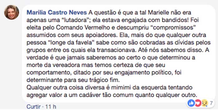 Em vez de prestar solidariedade às vítimas muita gente enviesada tentou desqualificar Marielle por suas predileções à esquerda espalhando mentiras nas redes, proliferando factoides e a desenhando como uma espécie de monstro engolido pelas próprias convicções.