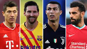 Da esq. p/ a dir.: Lewandowski, Messi, Ronaldo e Salah