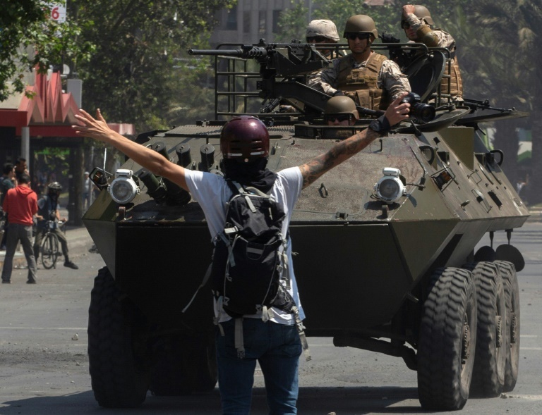 O Chile está “em guerra”, afirmou no domingo à noite o presidente Sebastián Piñera, depois que o país foi abalado por três dias de manifestações violentas e saques que deixaram sete mortos e quase 1.500 detidos, na crise social mais grave em três décadas.