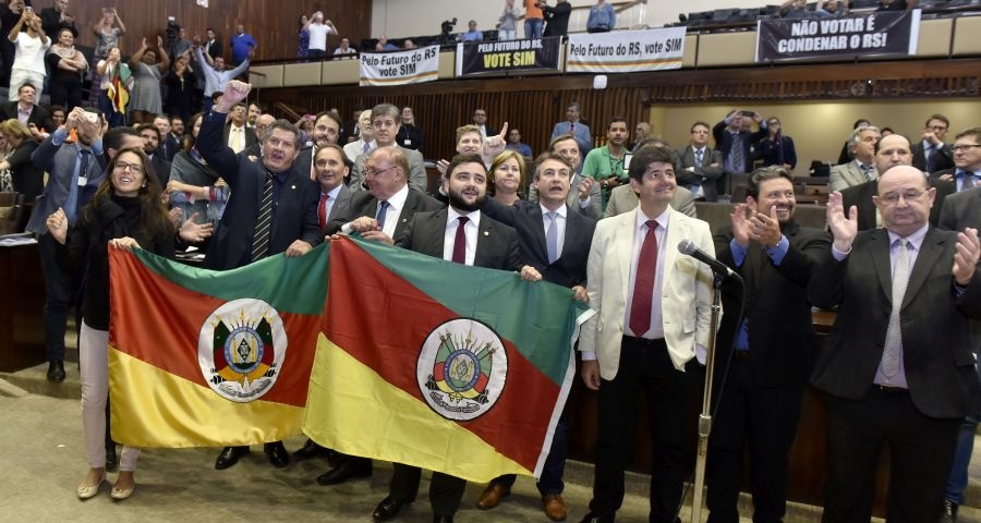 O plenário da Assembleia Legislativa do Rio Grande do Sul aprovou, na madrugada desta quinta-feira (8), por 30 votos contra 18, o Projeto de Lei Complementar 249/2017, de autoria do governo José Ivo Sartori (PMDB), que autoriza o Estado a aderir ao chamado de Regime de Recuperação Fiscal, proposto pelo governo de Michel Temer (PMDB). Nenhuma das 21 emendas apresentadas à matéria foram deliberadas, já que foi aprovado requerimento de preferência do líder do governo, deputado Gabriel Souza (PMDB), para votação apenas do texto do projeto.