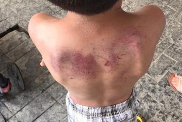 A maioria das marcas estava nas costas da vítima, mas também era possível ver no rosto. Ele passou por exames após a suspeita de trauma na cabeça, mas os resultados apontaram somente hematomas.