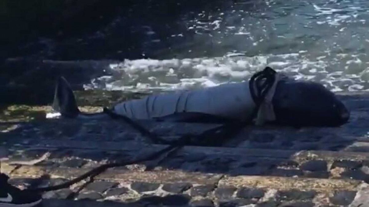 De acordo com Coelho Gil, o animal encalhado, que mede entre 1,5 e 2 metros de comprimento, está morto.