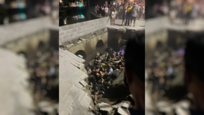 Calçada desaba e pessoas caem em rio durante evento de Natal em SC